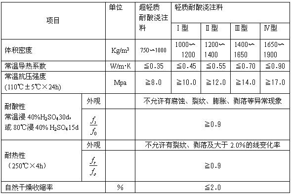 輕質耐酸澆注料是以能抵抗800-1200度酸性介質(硝酸、醋酸等)腐蝕的可澆注耐火材料稱耐酸澆注料。