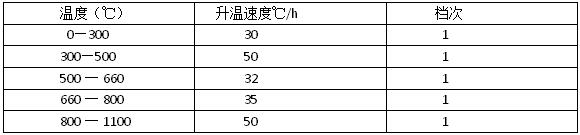 溫度升至1100℃時(shí),加料化鐵,起用12檔,待料化青后,用14檔送點(diǎn)升溫,月40℃/hr。并在高溫?zé)Y(jié)溫度1540~1560℃溫度2~3hr。