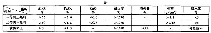 根據理論和實踐鄭州駒達耐火材料有限公司www.moneycity.cn,采用一、二等高鋁礬土加入少量軟質粘土,能制得荷重軟化溫度和耐壓強度均較高的制品,并能提高制品的成型和燒結性能。原料技術指標如下表1: