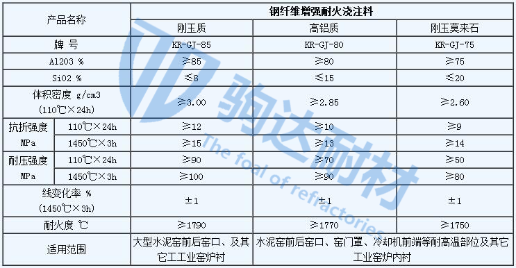 KR系列鋼纖維增強耐火澆注料采用純鋁酸鈣水泥結合,組配剛玉、氧化鋁粉、鋁礬土、硅線石、莫來石等,添加超微粉及外加劑,加入適量不銹鋼鋼纖維增強,現場加水攪拌后施工。