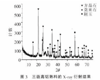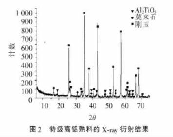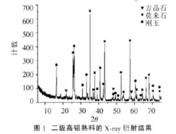 我國有豐富的鋁礬土資源,目前已探明的儲量超過20億t,居世界前列。因此礬土熟料的價格相對于剛玉、莫來石、紅柱石要低,而且常用的山西孝義特級、二級及三級高鋁熟料雜質含量較低,見圖1~4。由于以上4種高鋁熟料礦物相主要為剛玉相及莫來石相,不含有低熔點的晶相,因此以上4種原材料都適合作為軋鋼加熱爐的原材料。