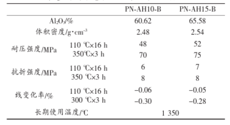 以特級、二級、三級高鋁熟料及焦寶石為主要原材料,加入硅微粉,以鋁酸鈣水泥為結合劑,以磷酸鹽為減水劑。固定硅微粉、水泥及磷酸鹽減水劑的加入量,研究澆注料的不同氧化鋁含量與荷重軟化開始溫度、體積密度、導熱系數的關系。表2為主要原材料的理化指標。