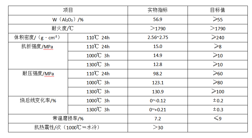 1:直接還原煉鐵回轉窯用澆注料的性能