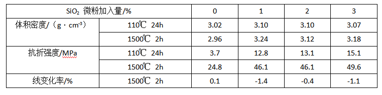 表1 SiO2微粉添加置對澆注料性能的影響