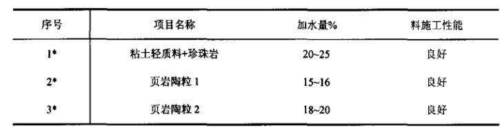 實驗過程選用多孔粘土熟料、頁巖陶粒、珍珠巖和SiO2超細粉等為原料,礬土水泥為結(jié)合劑,減水劑選用三聚磷酸鈉、六偏磷酸鈉及有機結(jié)合劑等。通過多組配比,進行對比試驗,分別檢驗澆注料的加水量、施工性能,以及不同溫度下的耐壓強度、體積密度和導熱系數(shù)等指標,通過對比確定出最佳方案。