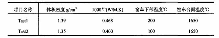 要求輕質(zhì)澆注料的工作溫度為1200℃,導熱系數(shù)小于0.400W/M·K(1000℃)時,窯車下部溫度下降到100℃以下。