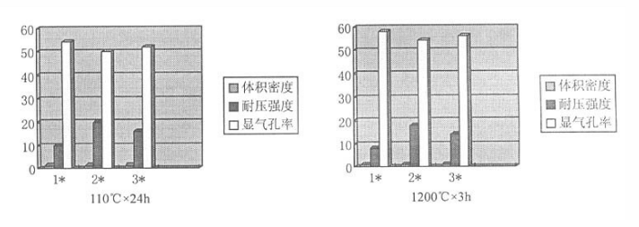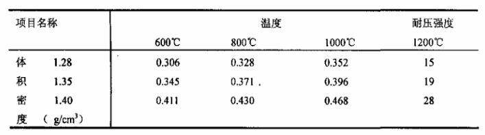 確定耐壓強度≥20MPa(110×24℃),體積密度≤1.35g/cm3,線變化率+0.3~-0.3%。這三項指標的確定能夠解決使用中塌陷和裂紋的現(xiàn)象。