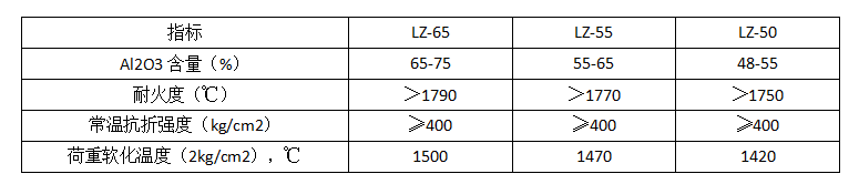 高鋁磚是以耐火黏土和高嶺土為原料制成的,其中氧化鋁含量在48%以上。高鋁磚的特點是耐火度高,荷重軟化溫度高,抗化學侵蝕性強,主要性能見表2。