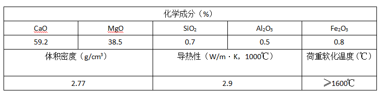 白云石磚的化學成分主要是CaO和MgO,CaO與MgO總含量>96%,其主要成分和性能見表4。