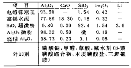 對(duì)加有SiO2、Al2O3微粉的高鋁質(zhì)低水泥自流澆注料中所涉及的化學(xué)過(guò)程。研究了SiO2、Al2O3微粉、高鋁水泥含量、加水量對(duì)低水泥耐火澆注料物理性能的影響。分析了分散劑、促凝劑、延遲硬化劑在低水泥自流耐火澆注料中的作用。