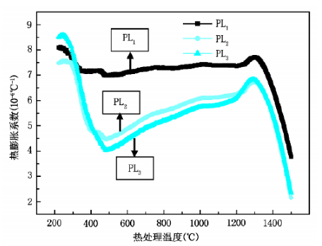 3.3鋁酸鈣水泥及熱處理溫度對材料熱膨脹系數(shù)的影響