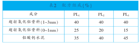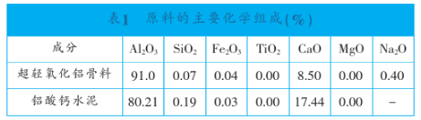 本實驗的主要原料為超輕氧化鋁骨料和鋁酸鈣水泥。所用原料的主要化學組成見表1。
