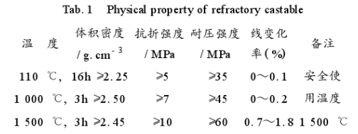 表3 耐火澆注料的物理性能