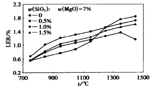 將硅微粉加入量增加至1.5%時,當燒成溫度超過1350℃后,試樣開始呈現收縮。