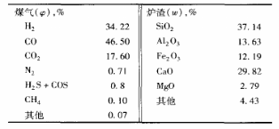 表2 煤氣和熔渣的組分分析