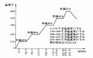圖7 氣化爐向火面磚更換烘爐升溫曲線