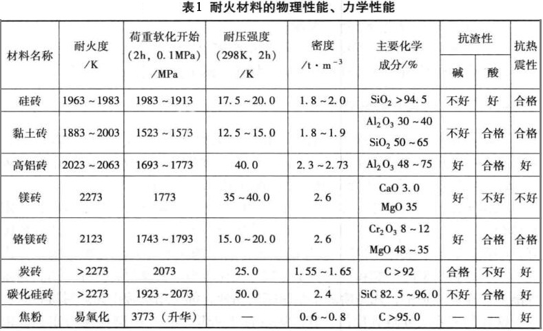 1.2 筑爐耐火材料的物理、力學(xué)性能