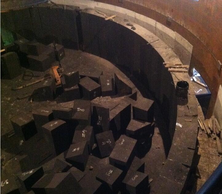 工業硅礦熱爐的爐體設計與電石、硅鐵、硅錳等鐵合金礦熱爐的爐型是有很大的不一樣的,工業硅礦熱爐為旋轉爐體,單臺5個爐眼,所以在爐襯耐火材料的砌筑上也是需要有相當成功經驗的施工隊伍才能完成內襯的砌筑工作。