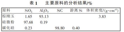 試驗所使用的原料是以棕剛玉為骨料,碳化硅、水泥、uf-SiO2、α-Al2O3 為基質(zhì),主要原料的分析結(jié)果如表1所示。