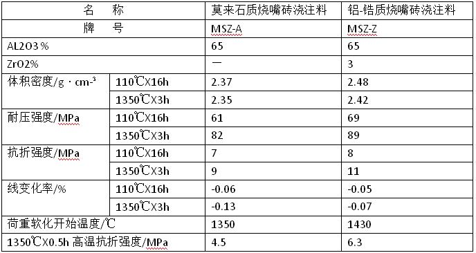 試驗結(jié)果與討論:ρ—AL2O3結(jié)合劑十分純凈,其AL2O3含量99 % ,很少有其它雜質(zhì)。液相鑒定證明ρ—AL2O3結(jié)合燒嘴耐火澆注料經(jīng)過1200 ℃煅燒后,骨料與基質(zhì)緊密結(jié)合,且在基質(zhì)中已形成大量的針網(wǎng)狀莫來石交錯生長,強度顯著提高。相對于大多數(shù)以礬土熟料為骨料,用礬土水泥或鋁酸鈣水泥作結(jié)合劑的澆注料。ρ—AL2O3結(jié)合劑不帶入低熔物,在基質(zhì)中不構(gòu)成AL2O3—SiO2—CaO系,在高溫下不形成鈣黃長石或鈣斜長石這樣的低熔物,使高溫性能得到顯著提高,它使?jié)沧⒘暇哂兄旅堋⒏邚姟⒛颓治g和耐熱震的特性,是高純不定形材料最理想的結(jié)合劑。