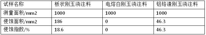 一:利用三種剛玉澆注料試驗抗硅鐵渣的侵蝕行為
