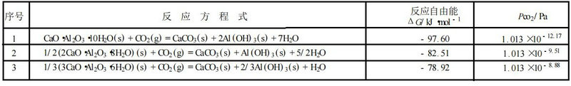 在熱力學(xué)上,這些水化產(chǎn)物在空氣中發(fā)生碳酸化反應(yīng)完全是可能的,涉及的反應(yīng)方程式見(jiàn)表1.在25℃、標(biāo)準(zhǔn)大氣壓下,三個(gè)反應(yīng)的自由能均為負(fù)值,且CO2的平衡分壓PCO2 分別為1.013X10-12.17Pa 、1.013X10-9.51Pa和1.013X10-8.88Pa。而在大氣壓中。PcO2=1.013X101.5Pa,這一數(shù)值比耐火澆注料中含水鋁酸鈣開(kāi)始碳酸化反應(yīng)所需的CO2的分壓高許多,如對(duì)于十水鋁酸鈣是(1.013X101.5)/(1.013X10-12.177)=4.68X1013倍。在熱力學(xué)上,含水鋁酸鈣抗CO2能力的順序?yàn)椋?/span>3CaO· Al2O3·6H2O>2CaO·Al2O3·8H2O>CaO·Al2O3·10H2O。高鋁水泥水化產(chǎn)物的碳酸化速度依賴(lài)于水化產(chǎn)物的穩(wěn)定度。