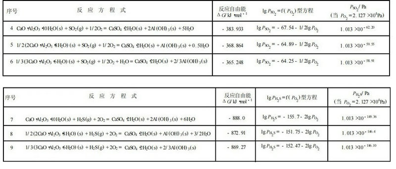 與高鋁水泥水化產(chǎn)物的碳酸化相比 ,其硫酸化現(xiàn)象卻未引起足夠的重視。在大氣中,除CO2 酸性氣體外,還存在SO2、H2S氣體。它們對(duì)高鋁澆注料的基質(zhì)部分的水化產(chǎn)物也有強(qiáng)烈的侵蝕作用,導(dǎo)致澆注料粉化和剝落。其反應(yīng)方程式見(jiàn)表2和表3。實(shí)際上,在地表?xiàng)l件下,PO2 = 2. 127 ×10 4 Pa ,按上述各反應(yīng)方程可算出SO2 和 H2S 的平衡分壓分別為1. 013 ×10 - 62~1. 013 ×10 - 58 Pa 和1. 013×10 - 149. 36~1.013 ×10 - 146 Pa。這說(shuō)明,在大氣條件下( PSO2 = 1. 013 ×10 - 5. 32 Pa 和 PH2S = 10 - 6. 22 Pa ,按居住區(qū)大氣中有害物質(zhì)濃度折算,含水鋁酸鈣在熱力學(xué)上是不穩(wěn)定的。它們的穩(wěn)定性順序?yàn)?/span>3CaO·Al2O3·6H2O > 2CaO·Al2O3·8H2O > CaO·Al2O3·10H2O。